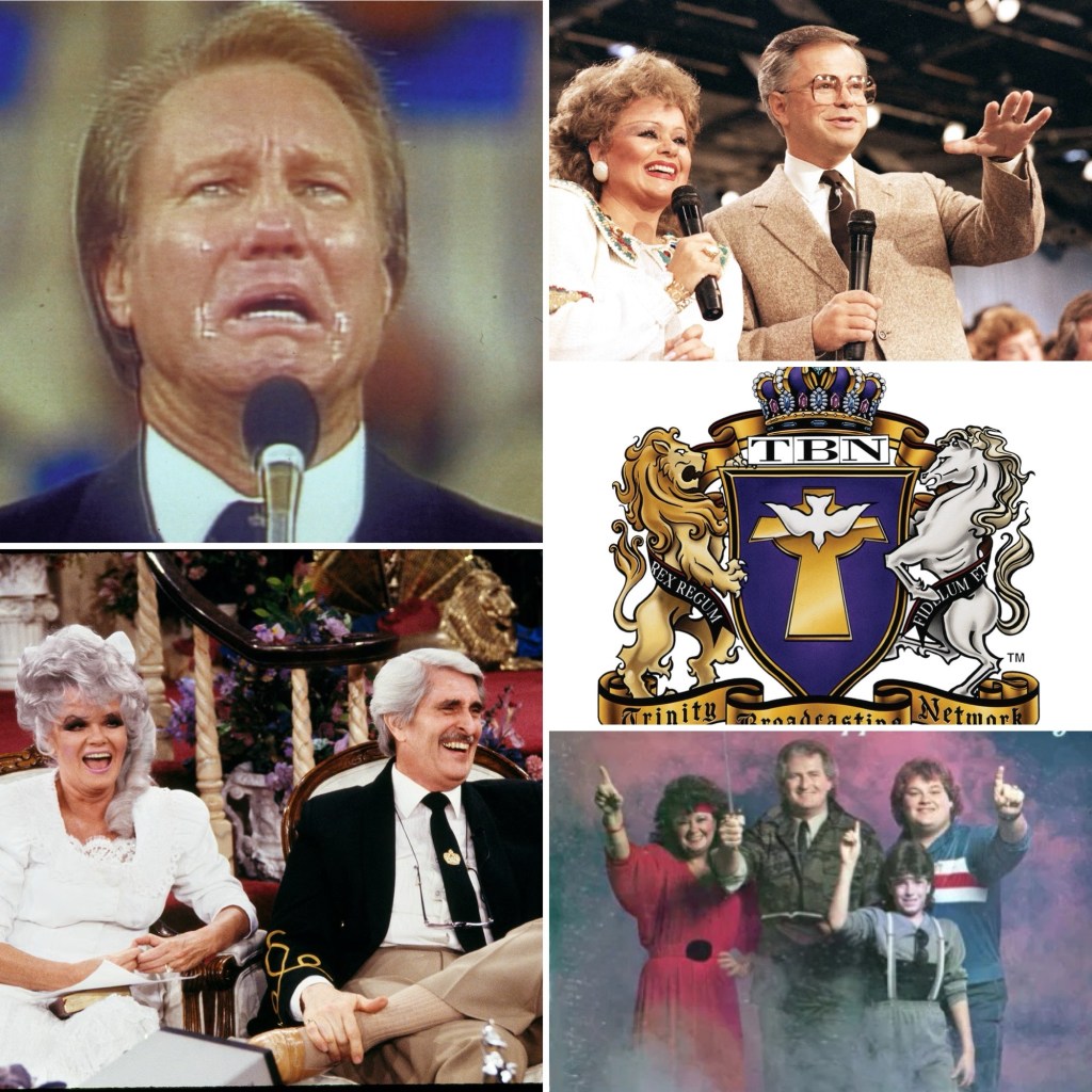 All these memories came flooding back to me as I was listening to the recent series about Jimmy Swaggart on one of my favorite podcasts, The Ex-communication station. I couldn’t help but start a deep dive into YouTube clips of Praise the Lord, Jimmy, Jim and Tammy Faye, Benny Hinn. These figures always loomed in the background of my childhood, and I vaguely remember people talking about the downfalls of Jimmy Swaggart, the infamous cry of course, and Jim and Tammy Faye. As a kid, I knew their falls were bad, but I didn’t know exactly what happened. I just knew it had to be bad. My research uncovered that Jimmy, Paul and Jan and Jim and Tammy Faye all had their roots in my church’s denomination, the Assemblies of God. I remember a picture at our church campground of a time when Jimmy spoke there, every seat full, people sitting in the aisle, but I never knew he was affiliated with the AoG. I started to wonder what it is about that denomination, which was pretty young as far as churches go in the 1980s, that attracted these huge personalities and fostered their temptations until they crashed and burned. My research uncovered lots of rumors of other affairs covered up, and how the Crouches covered up the rape of their own granddaughter and had another granddaughter expose some of the dirty secrets of their $800 million empire, secrets that were blatantly there, but to have your own granddaughter say, hey, this isn’t right, and then fire her, her husband and your son, her father. Wow.